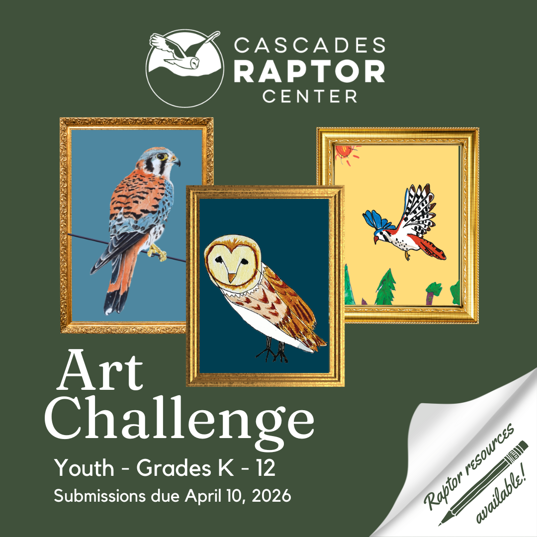 Cascades Raptor Center is excited to announce the third year of our Raptor Art Challenge, a community project to inspire creativity, curiosity, and conservation! Join us to creatively showcase the importance and wonder of raptors.