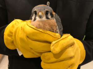 When capturing a raptor, wear thick leather gloves. Some raptors are small but they can still cause injury with their talons. You will also need two towels or blankets, an appropriately sized box lined with a towel/blanket with a lid, and an assistant if possible.